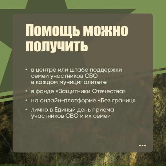 Есть несколько способов, как можно обратиться за поддержкой. Один из них — Единый день приема участников специальной военной операции и членов их семей на площадке Штаба общественной поддержки партии «Единая Россия».